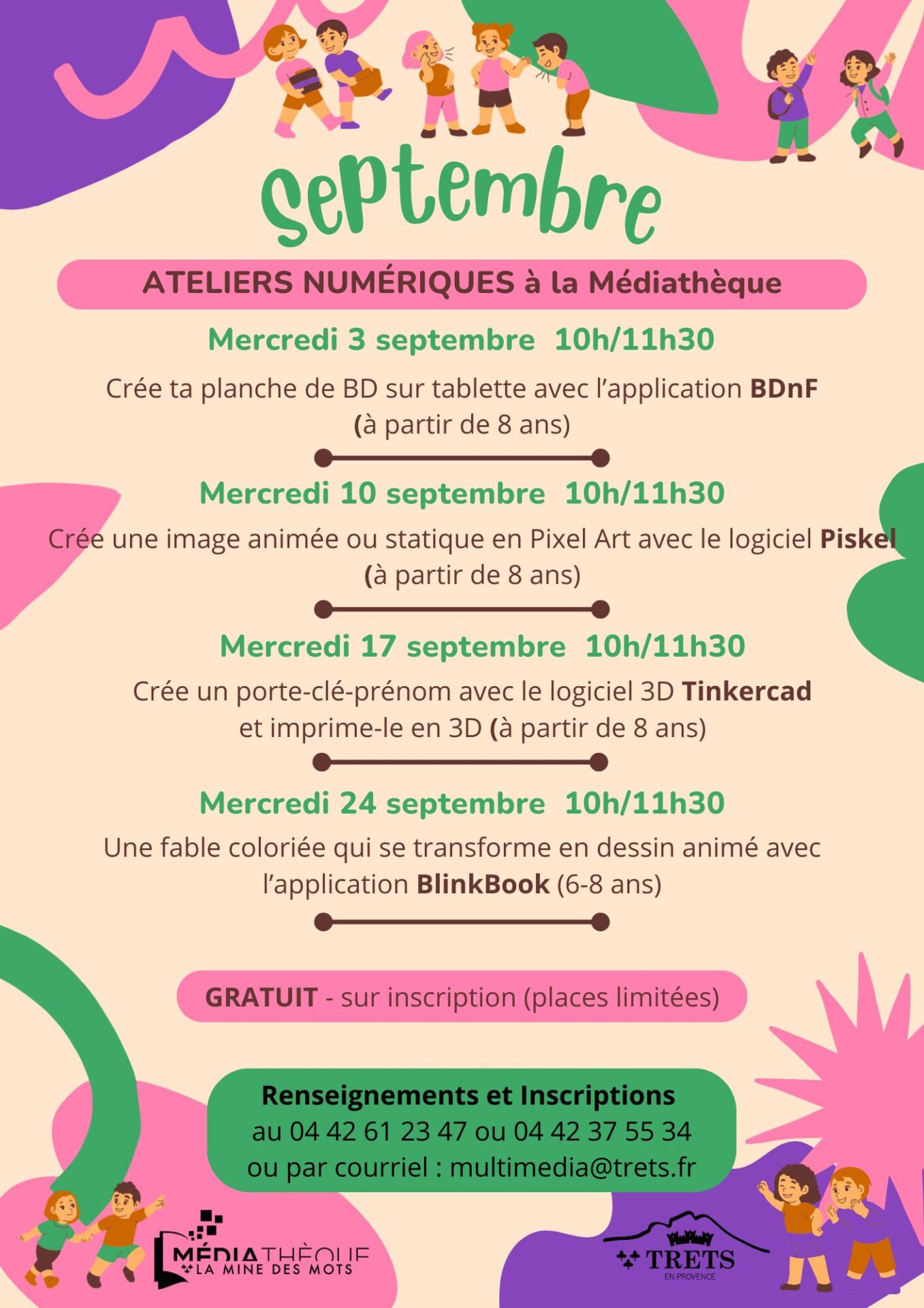 29 août 2025 Découvrez les ateliers numériques proposés par notre Médiatrice Numérique en septembre à la Médiathèque la Mine des Mots