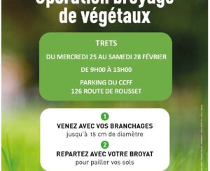 La Métropole Aix-Marseille-Provence vous invite à participer à une opération de broyage de végétaux du mercredi 25 au samedi 28 février 2026, sur le terrain du CCFF,...