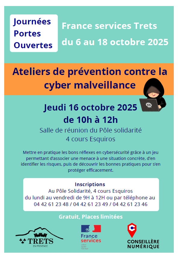 Dans le cadre des Journées Portes Ouvertes France services, participez à un atelier ludique et interactif pour apprendre à repérer les menaces numériques, identifier les risques et adopter les bons réflexes pour protéger vos données personnelles.