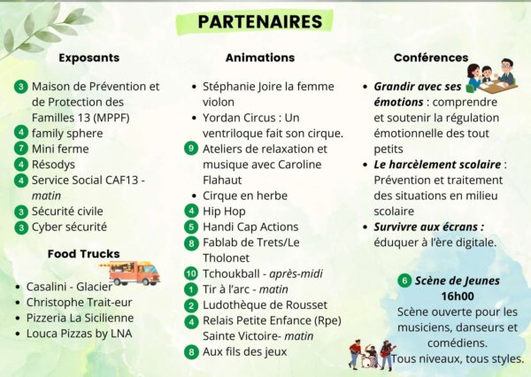 Dans le cadre de la Convention Territoriale Globale Sainte-Victoire (CTG), le service Jeunesse de la Ville de Trets est partenaire de la Journée des Familles qui se déroulera le samedi 18 octobre 2025 de 10h à 17h30 à la Garenne – Peynier.