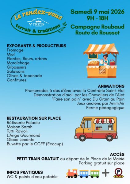 La Municipalité organise son premier rendez-vous terroir et traditions le samedi 9 mai à la Campagne Roubaud – Route de Rousset.