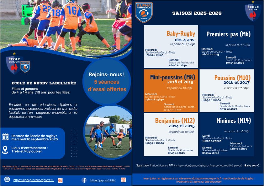 ALPHA PROVENCE SPORT – Infos école de rugby rentrée 2025