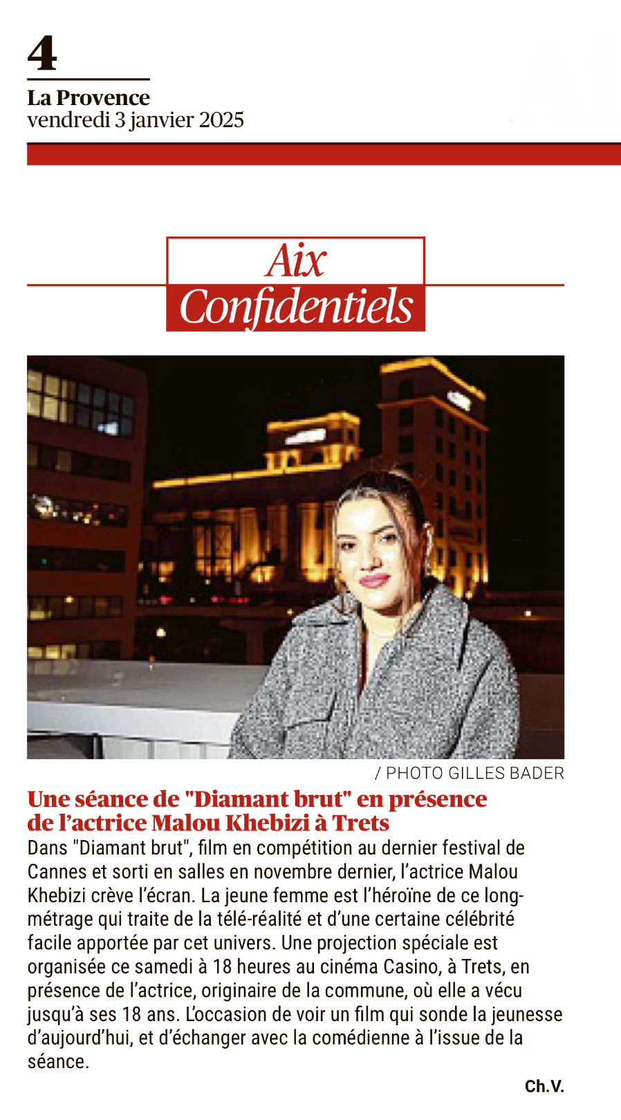 La Provence – 03/01/2025 – Une séance de « Diamant brut » en présence de l’actrice Malou Khebizi à Trets