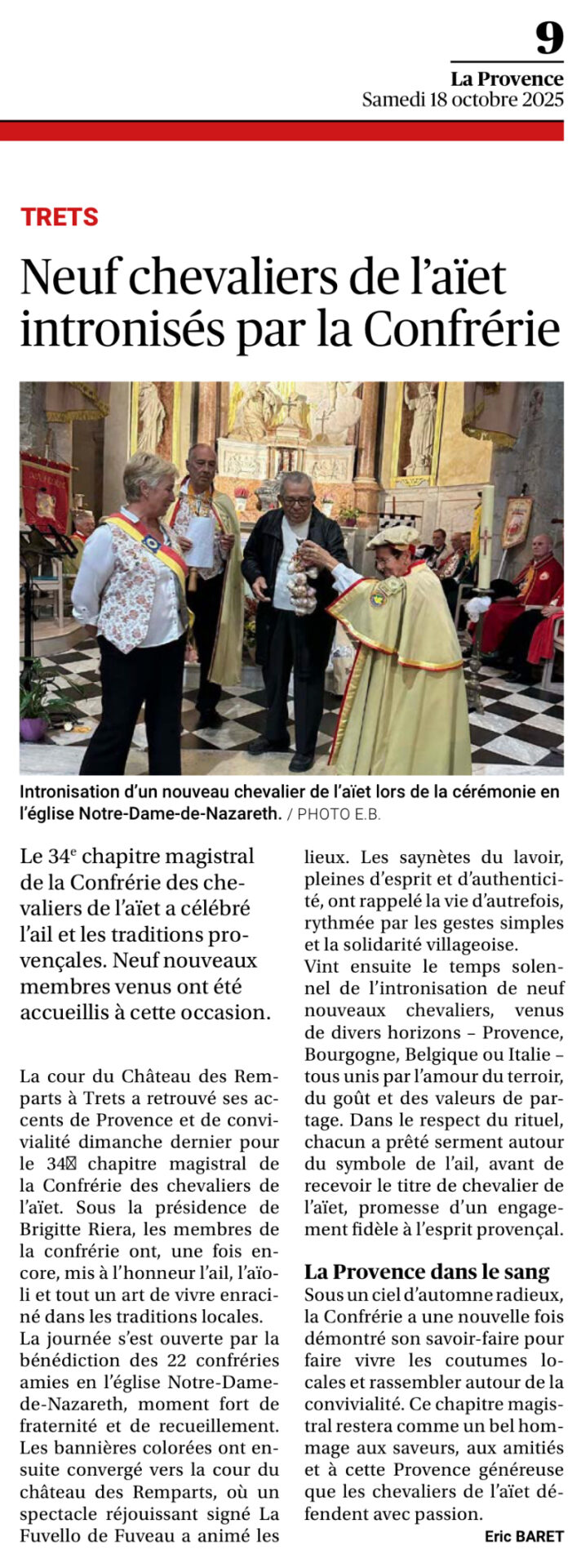 La Provence – 18.10.2025 – NEUF CHEVALIERS DE L’AÏET INTRONISÉS PAR LA CONFRÉRIE