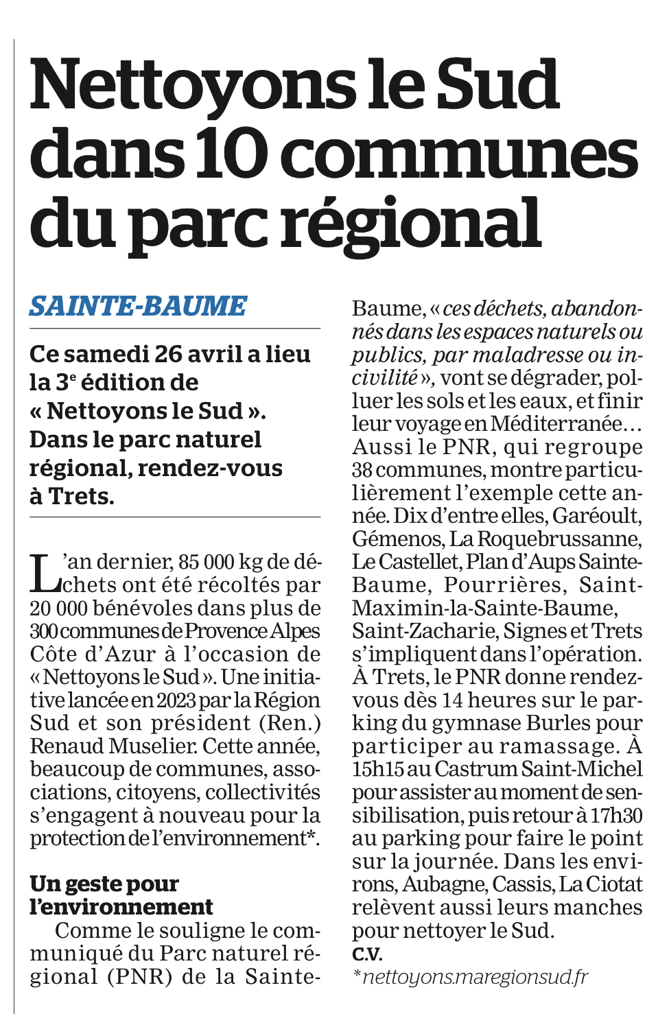 La presse en parle ! Nettoyons le Sud dans 10 communes du parc régional