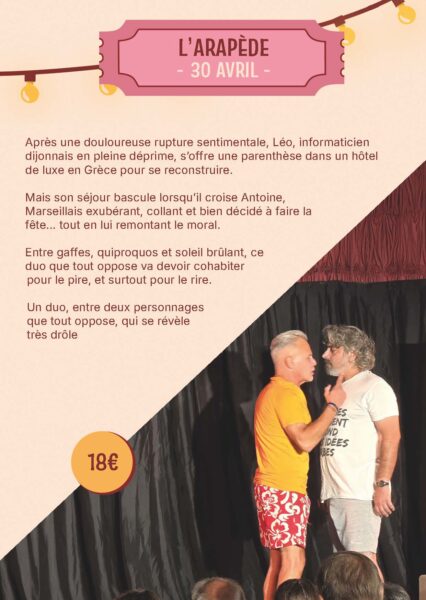 Venez vous restaurer autour d’un apéritif convivial sous les platanes à partir de 18h30.