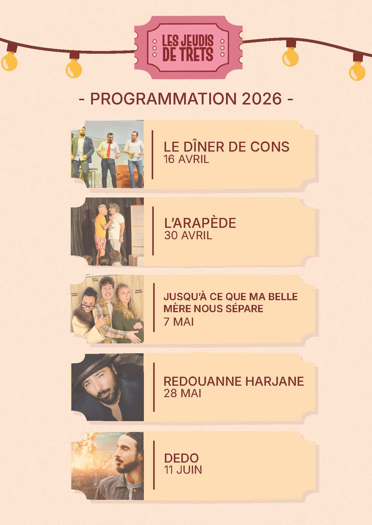 Découvrez la programmation des Jeudis de Trets pour cette édition 2026 qui aura lieu au Cinéma Casino du 16 avril au 11 juin 2026.