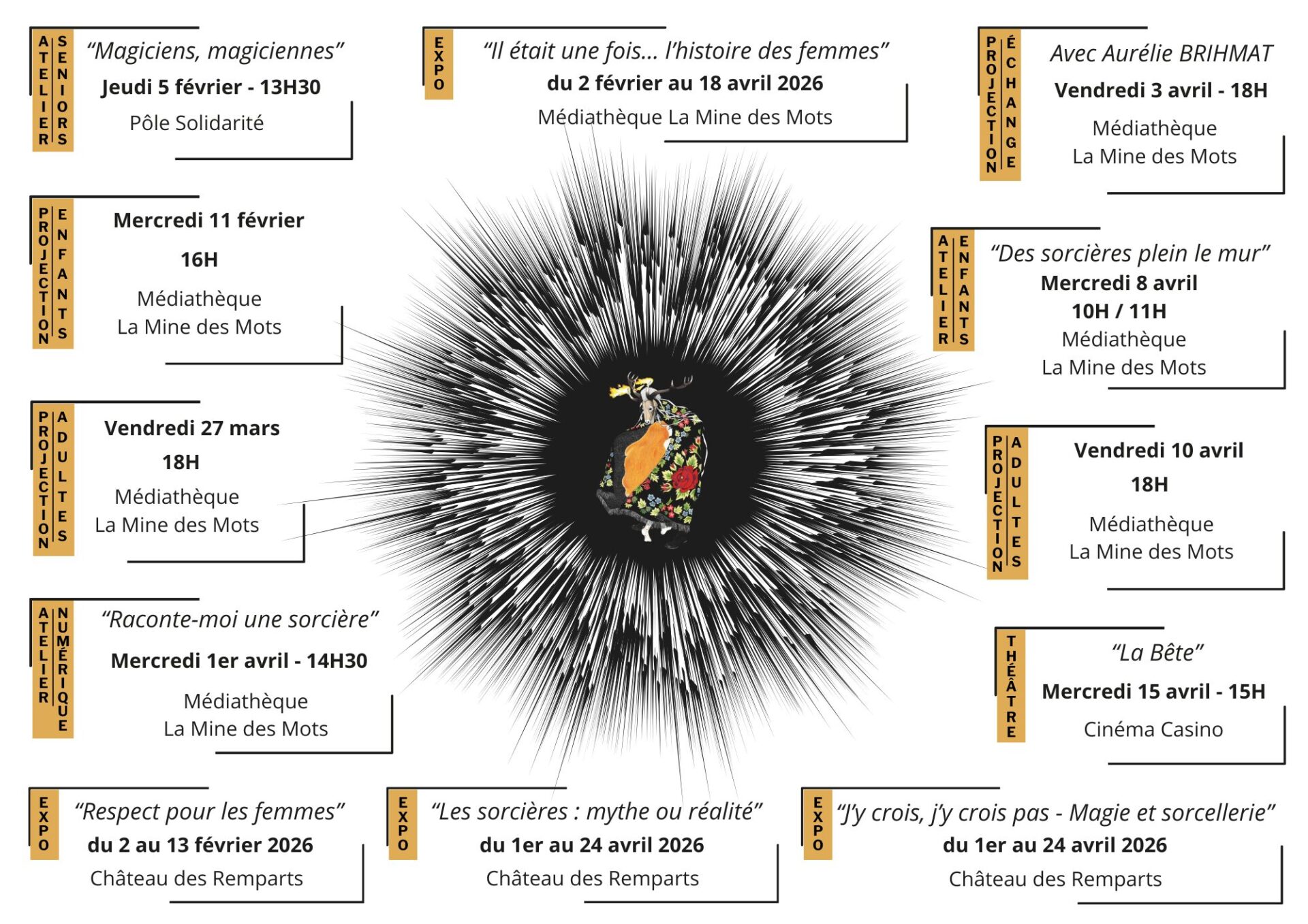 C’est dans cet esprit qu’elle a choisi de s’inscrire dans le dispositif départemental « Nous, sorcière et sauvage », et d’en prolonger la dynamique par un programme d’animations déployé sur plusieurs mois, construit de manière transversale avec l’ensemble des services municipaux : culture, jeunesse, seniors, médiathèque…