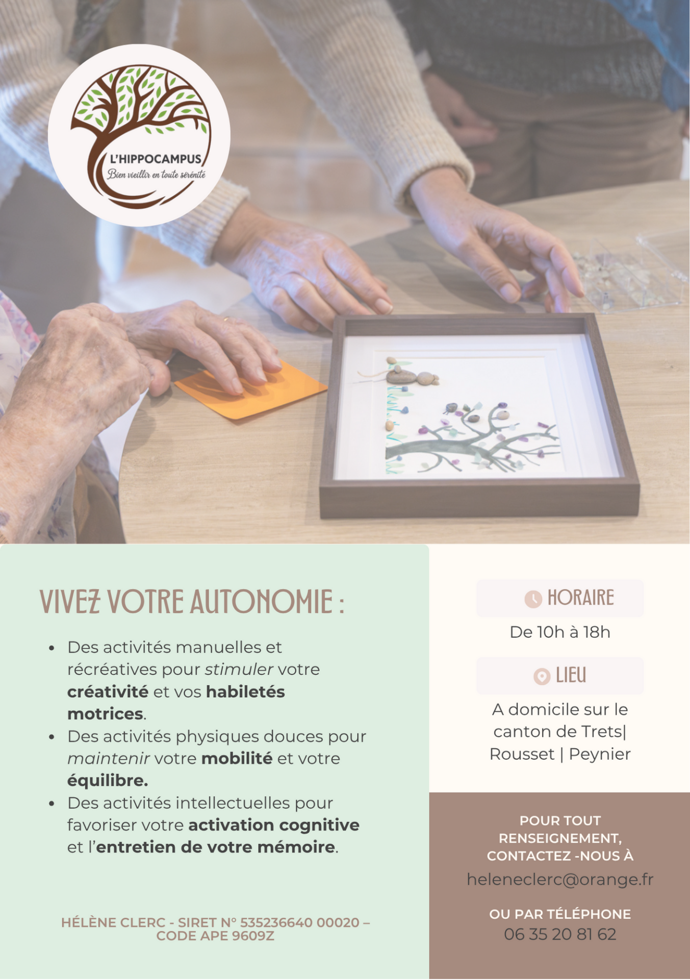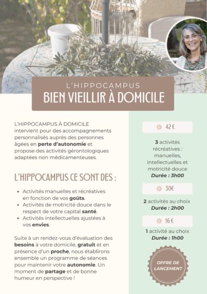 L’HIPPOCAMPUS À DOMICILE se déplace au domicile des personnes âgées en perte d’autonomie afin de leur proposer des activités manuelles, récréatives, intellectuelles et de motricité douce.