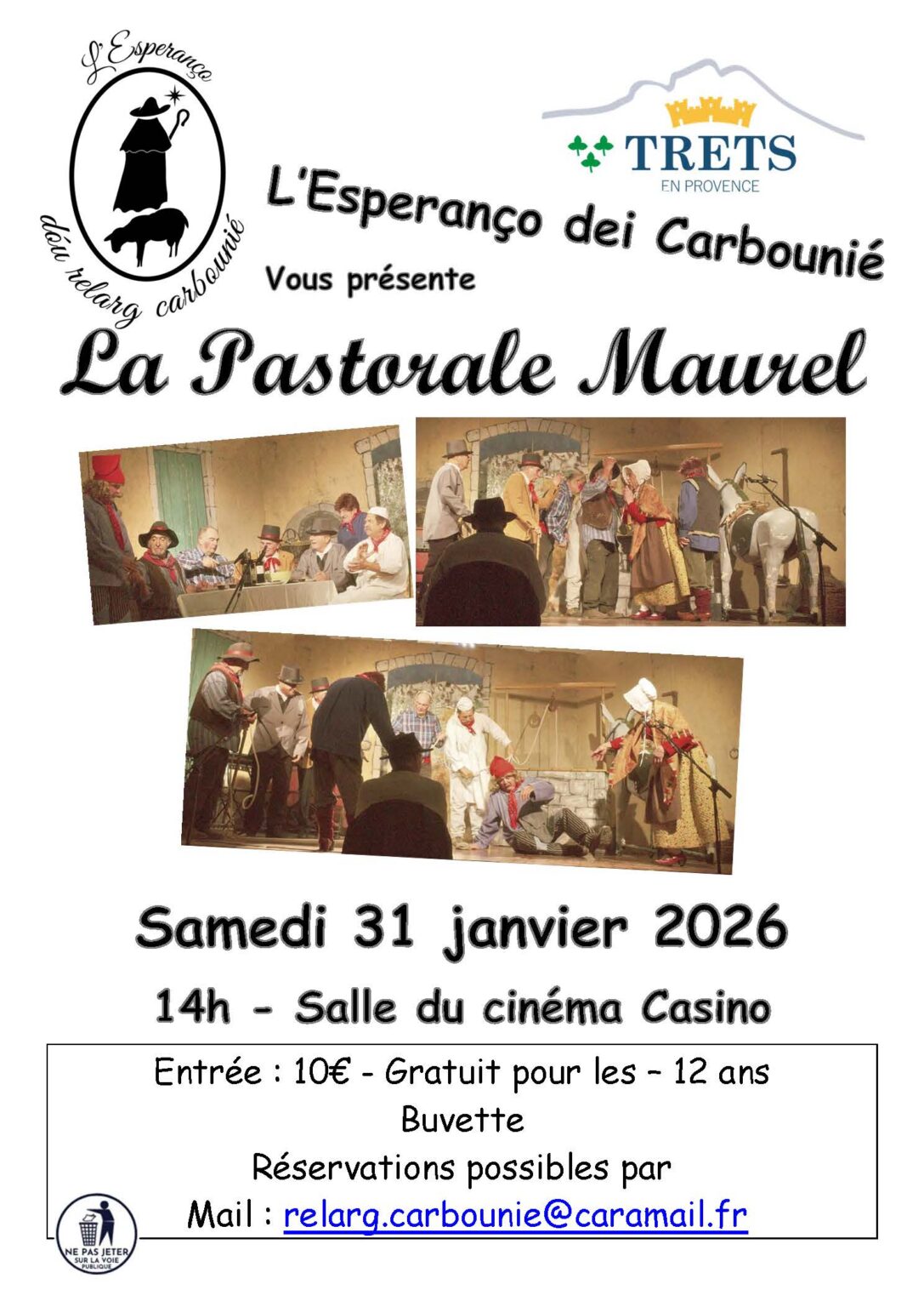 31 Jan TRADITION 10€ - Gratuit - de 12 ans La Pastorale Maurel par l’Esperanço dei Carbounié 14h Cinéma Casino